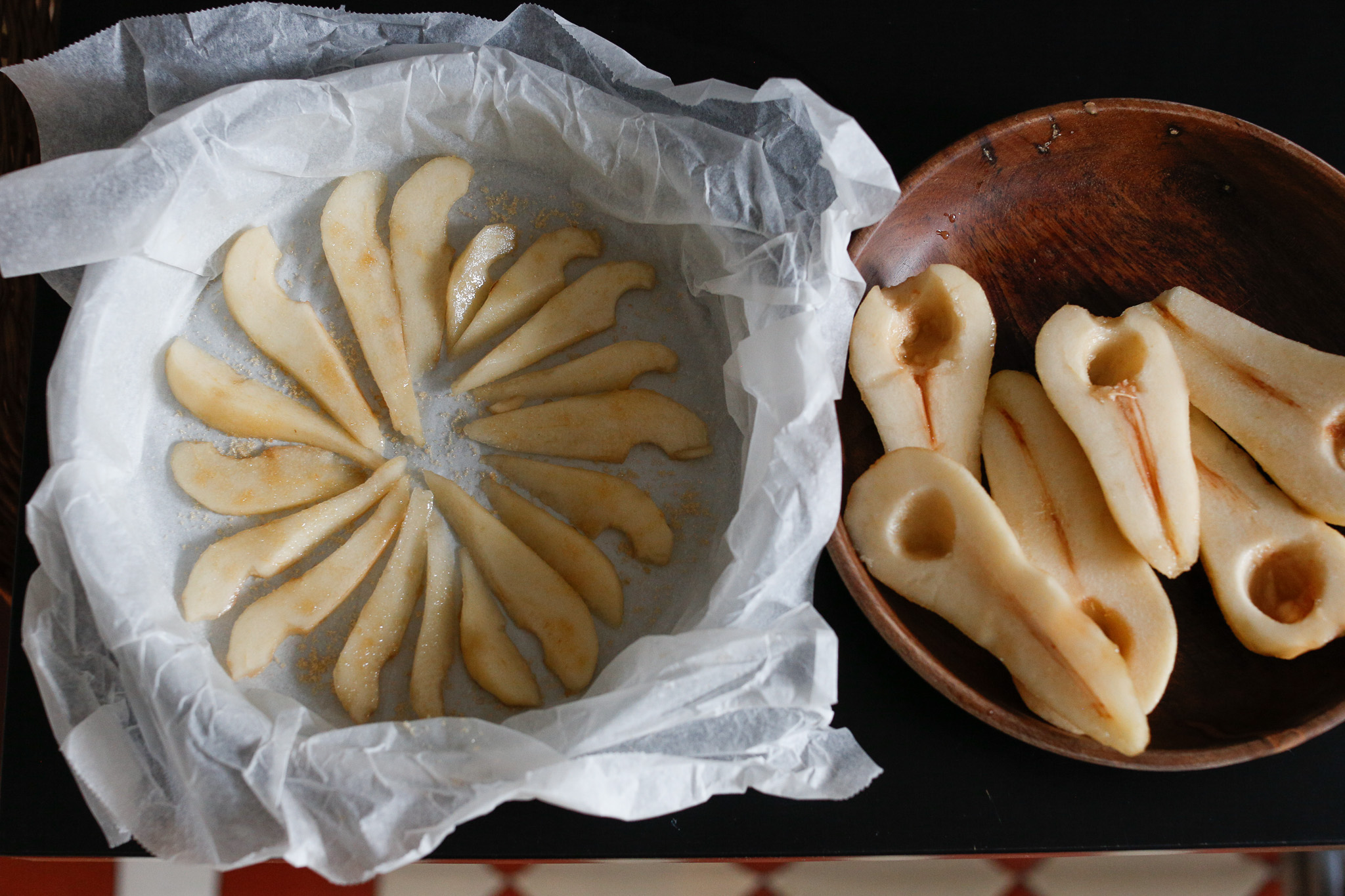 I forgot to add sugar on the bottom of my pan so I added it on top of the pears