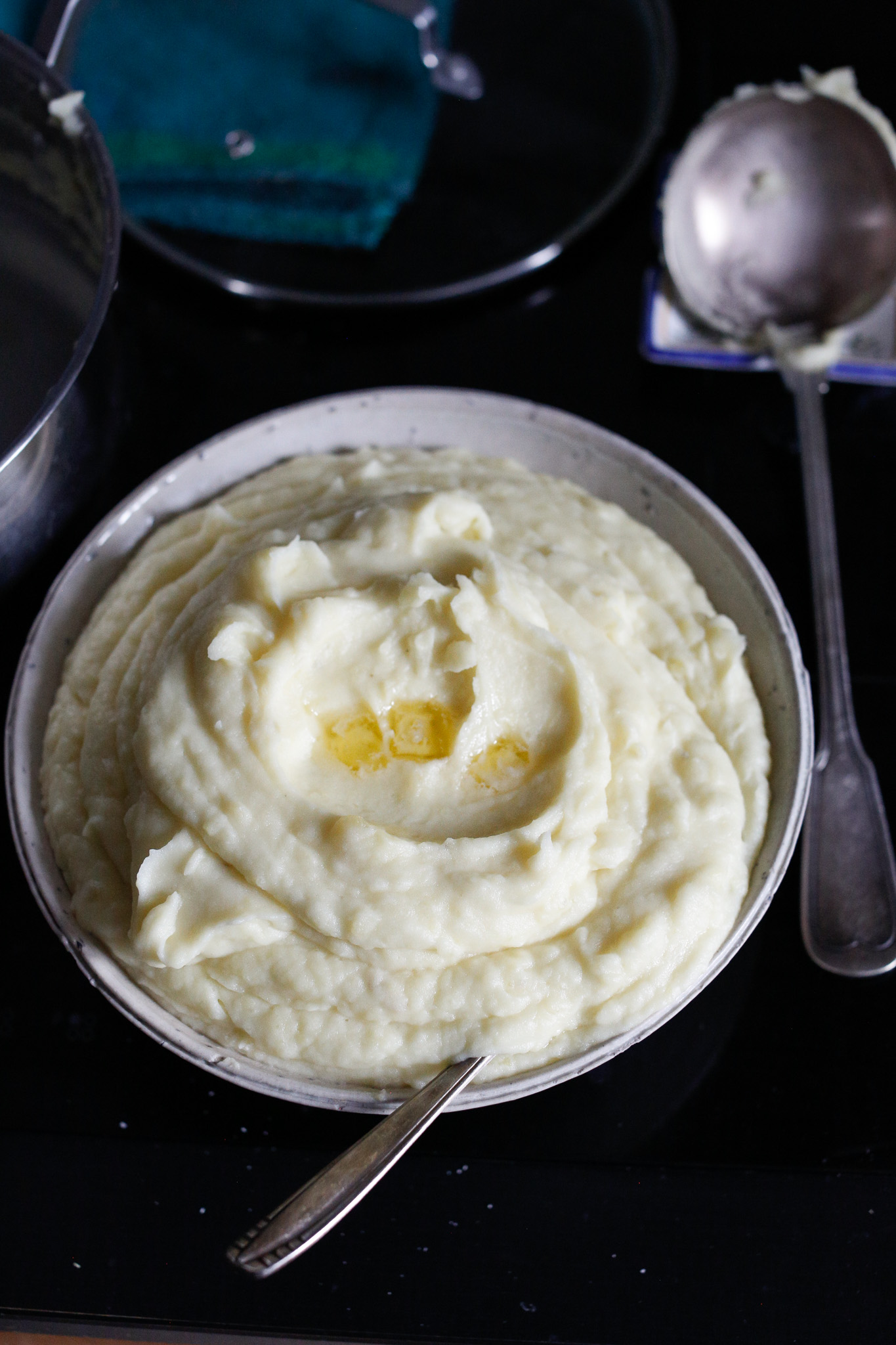 At this point you want to taste your potatoes and decipher if you want to add more milk for creaminess, more butter or salt to taste. Trust your palette!
