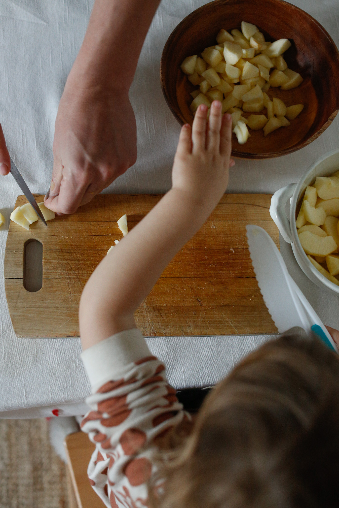 3-4 apples – cored, peeled and sliced for your child to cut (any size they can manage)