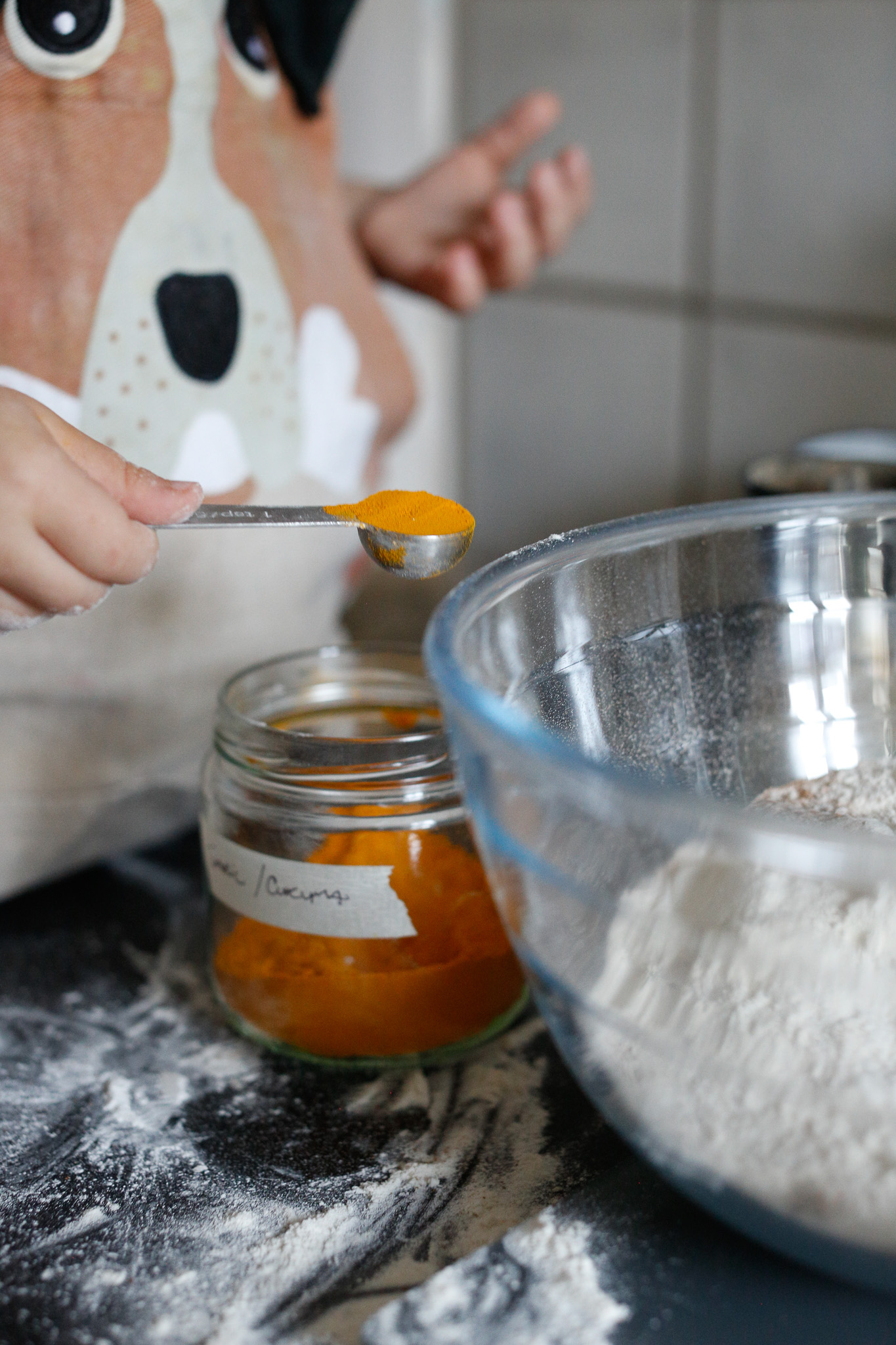 We don't mind if there is excess turmeric so her daddy gave her the freedom to let her fill it up as she sees fit (within toddler reason of course!)