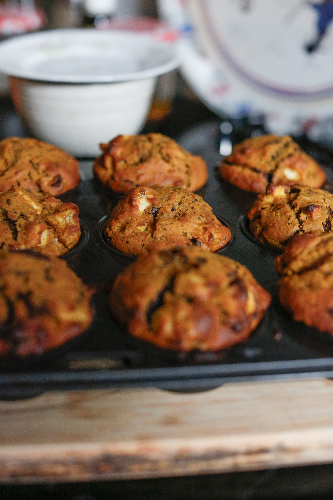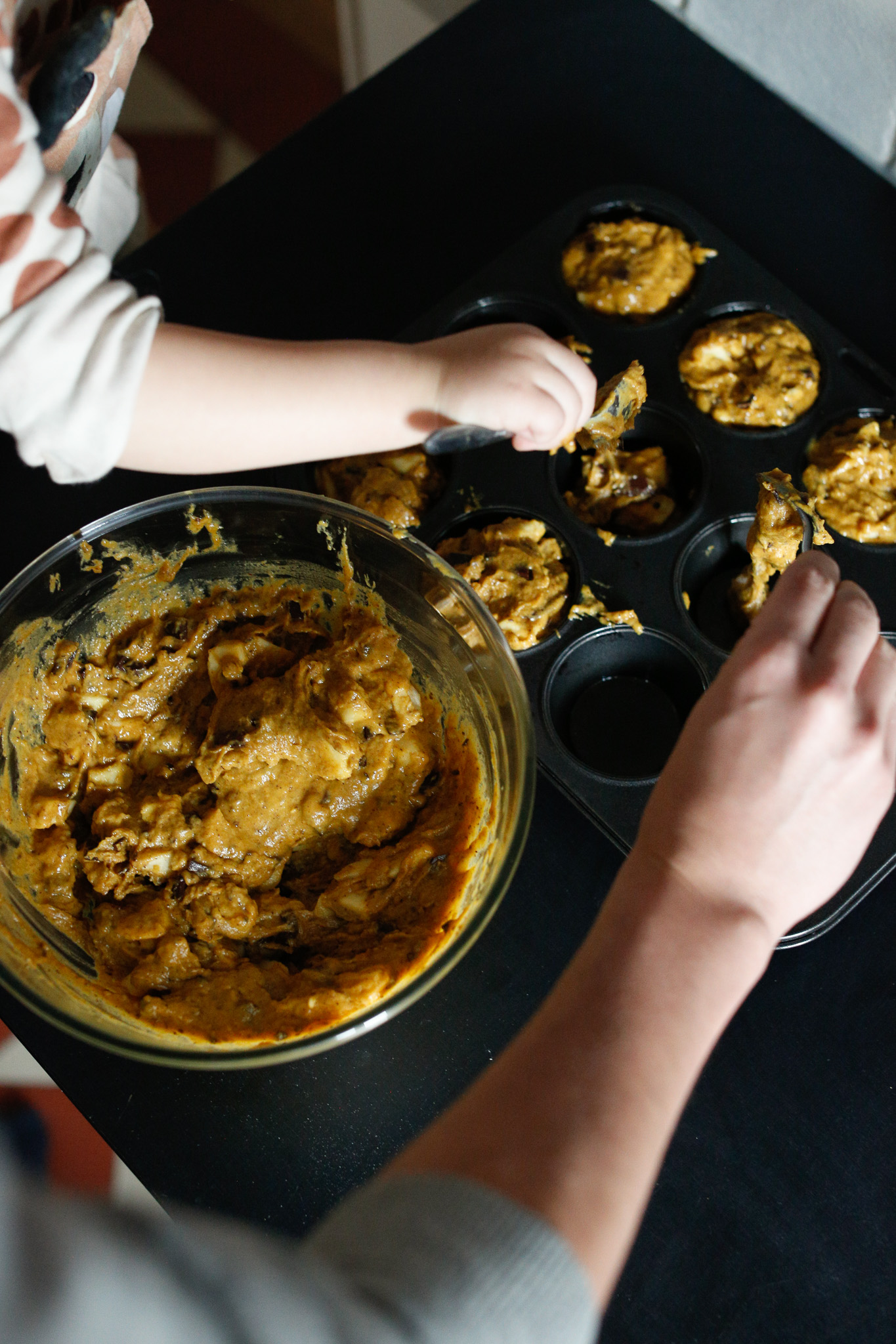 Pumpkin apple ( & chocolate) muffins with my almost 3 year old