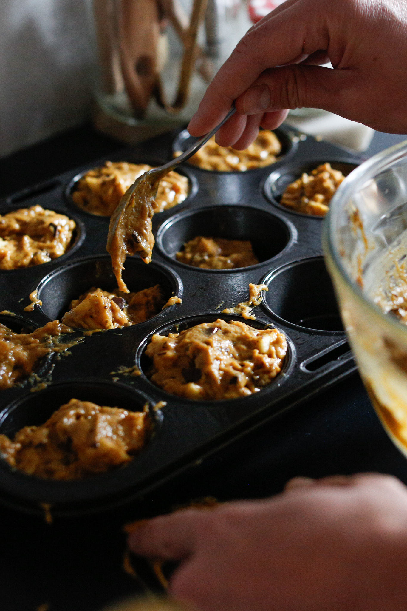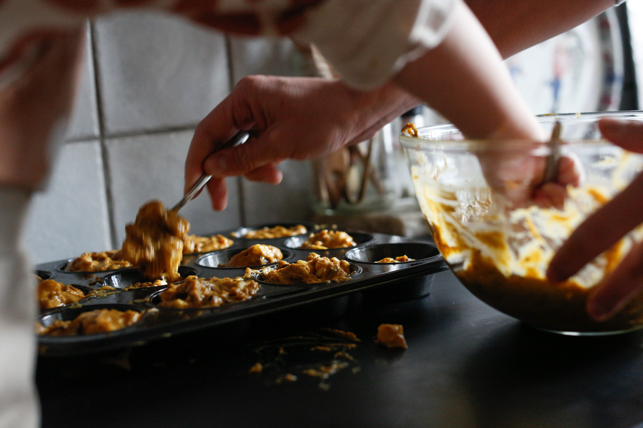 Aiming (filling the muffin tins)